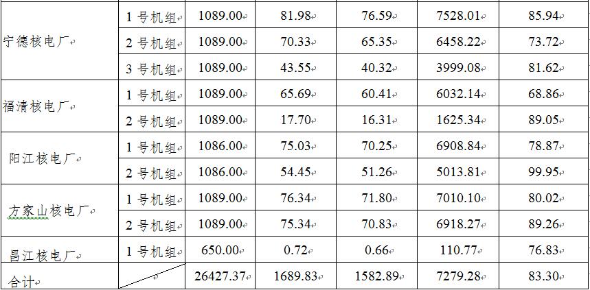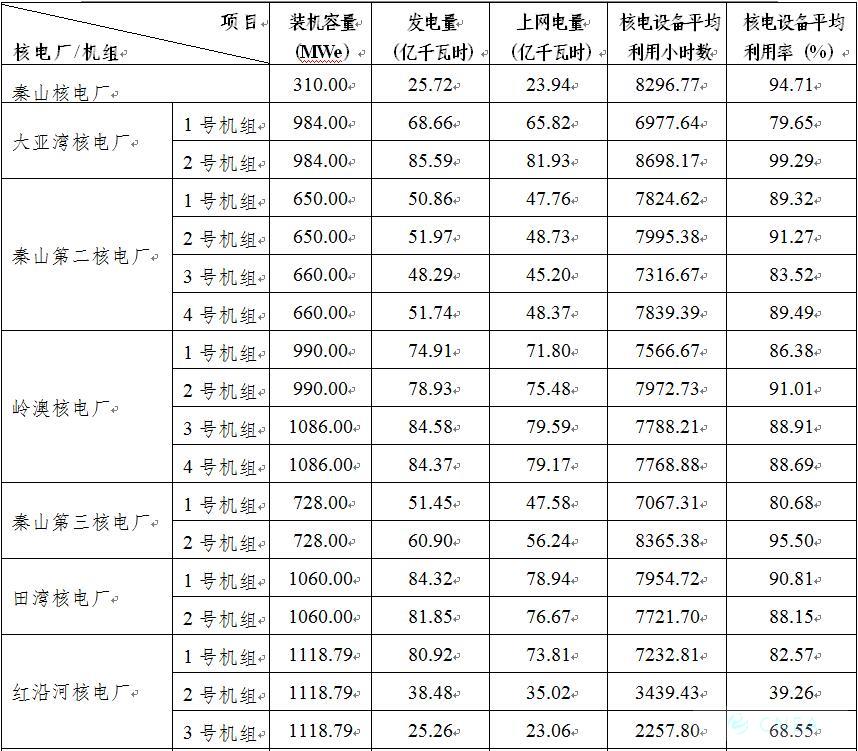 表1 1-12月28台运行核电机组电力生产情况统计表[5]