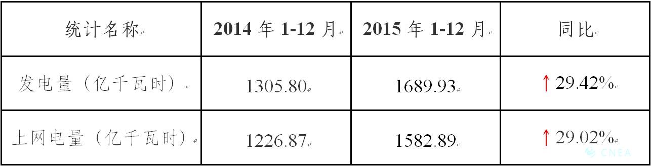 一、2015年1-12月核电生产情况