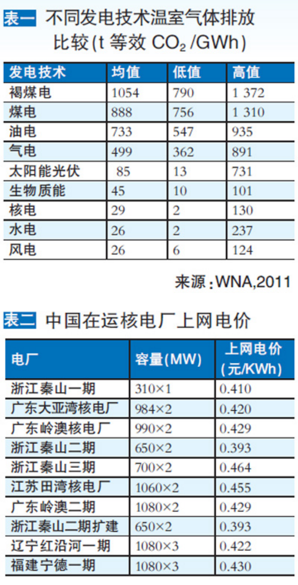 过程中会产生间接排放,其程度取决于不同的环节和所使用的技术。研究表明,即使在排放量最高的情况下,核电的间接排放仍比化石燃料发电的直接排放低一个数量级之多。与同等规模的风电或水电总排放量相比(见表一),核电都不失为一种真正意义上的低碳技术。
