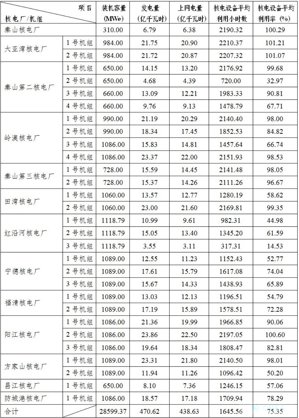 因此,上述机组在1月至3月的核电设备平均利用小时数及核电设备平均利用率较低。此外,1月至3月由于较多机组进行大修或小修,同时有大量机组在春节期间进行降负荷或停机操作,导致30台商运机组整体核电设备平均利用小时数及核电设备平均利用率较低。