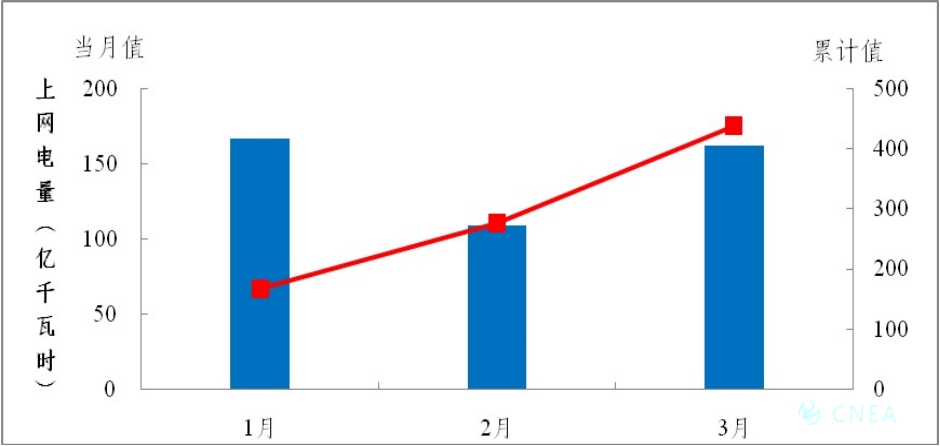 图2 2016年1-3月全国商业运行核电机组发电量趋势