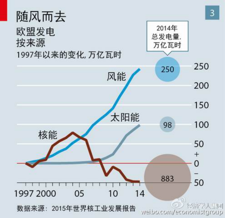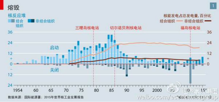 《经济学人》数据团队通过三张图表阐释了核电举步维艰的发展现状。